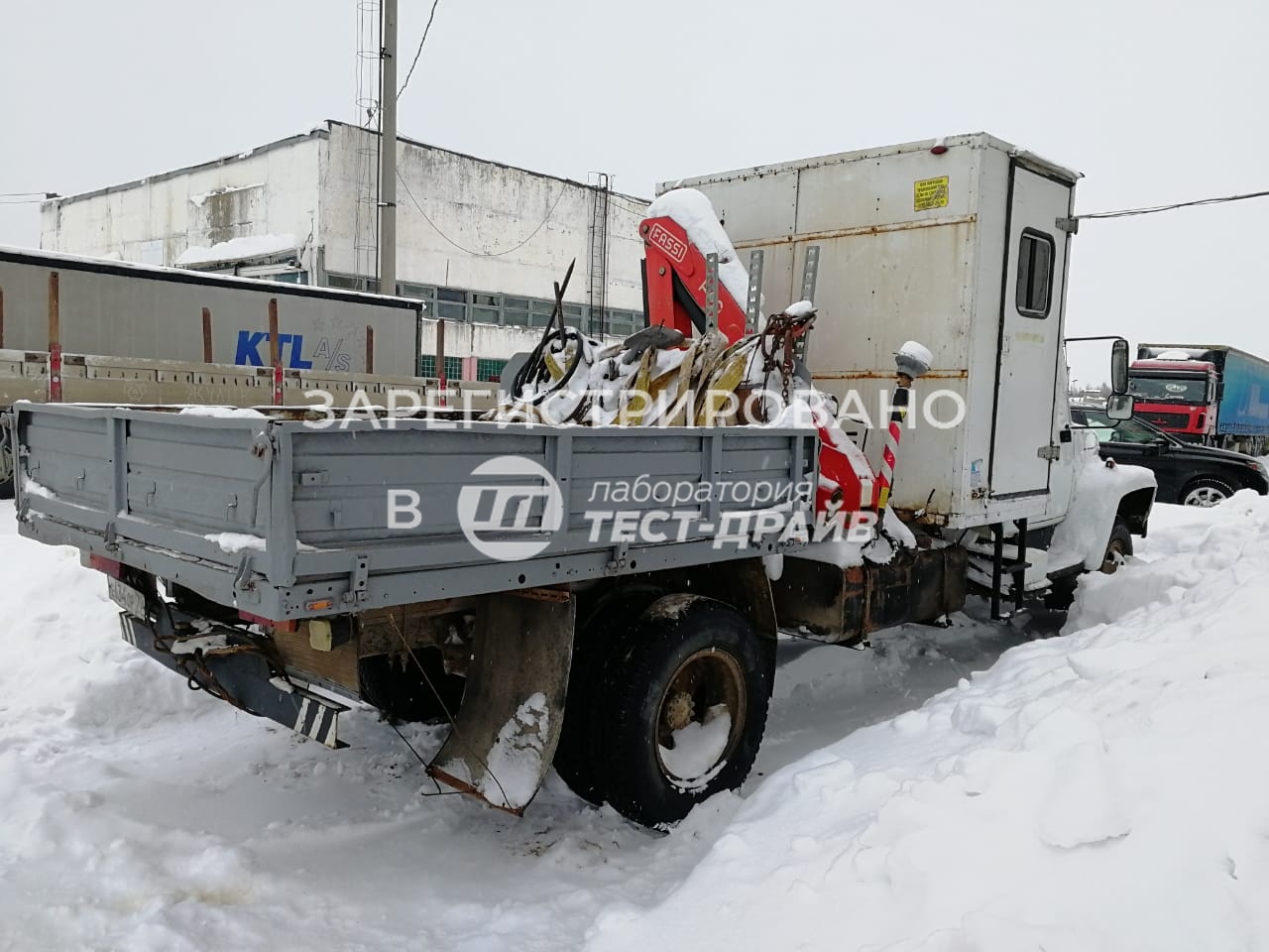 - Установлен кран-манипулятор (КМУ) за кабиной автомобиля.